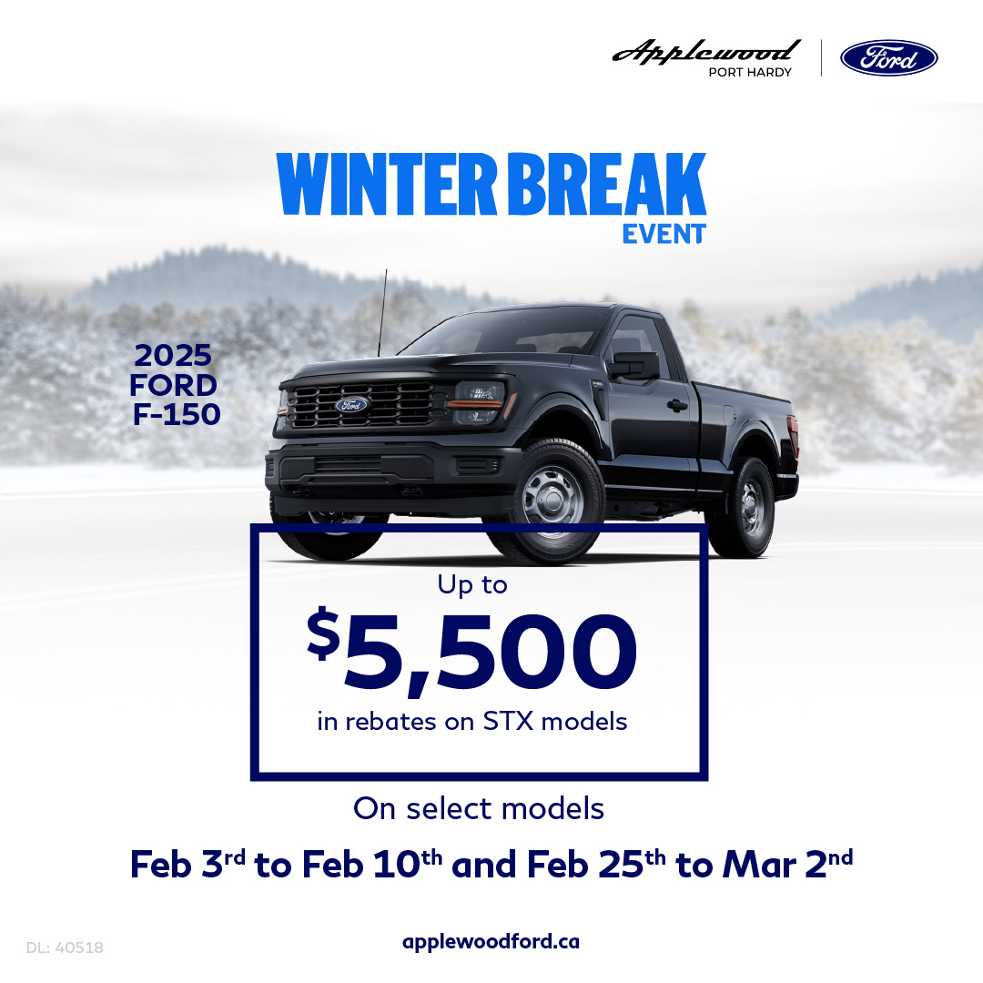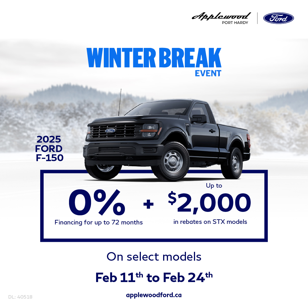 41 Retail offer valid at participating dealers from February 11 – 24, 2026. Dealer trade may be necessary (but may not be available in all cases). Receive purchase financing from 0% APR for up to 72 months on a new 2025 Ford F-150 STX model on approved credit from Ford Credit Canada Company for qualified retail customers. Not everyone will qualify for this offer or the lowest interest rate. Dealers set selling price and may sell for less. Example: Finance $65,000 with $0 down payment at 0% APR for 72 months, monthly payment is $903 (total of 72 monthly payments); interest cost of borrowing is $0; and total to be repaid is $65,000 (except in Quebec where the total is $65,059 which includes $59 fee related to the RDPRM registration payable upon signature). See your Ford dealer for details.