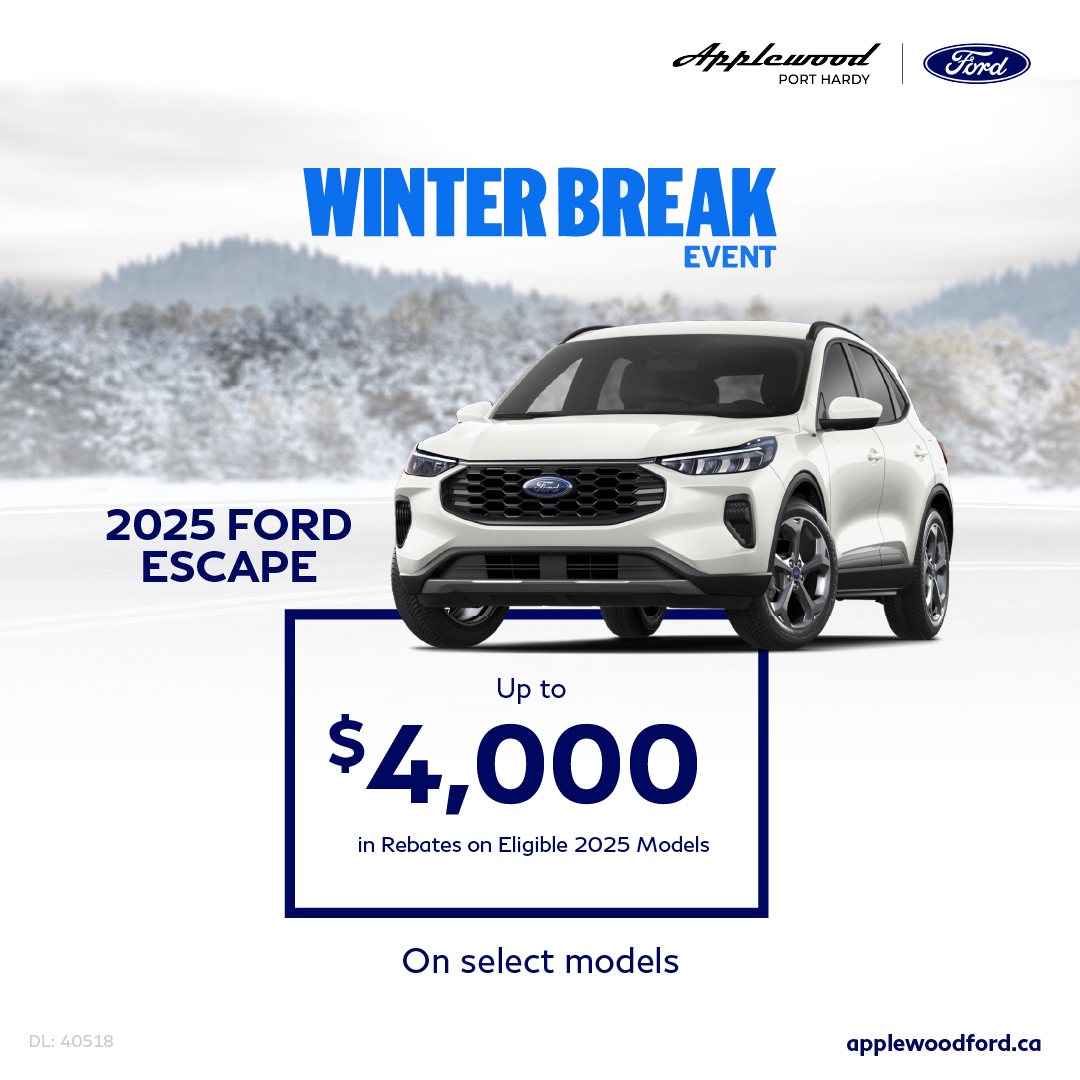 Disclaimer: 67 Retail offer valid at participating dealers (except in Quebec and British-Columbia) from February 3 to March 2, 2026. Dealer trade may be necessary (but may not be available in all cases). Receive $4,000 in Manufacturer Rebates with the purchase or lease of a new 2025 Ford Escape model with a gas or hybrid engine. Not combinable with any fleet consumer incentives.